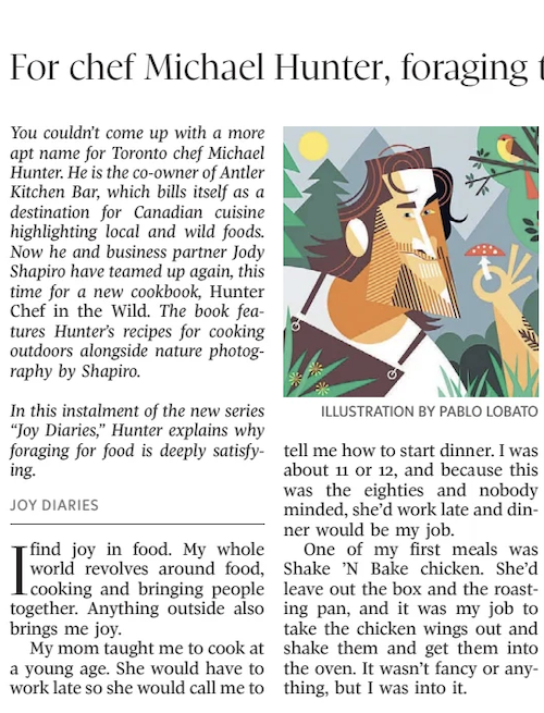 You couldn’t come up with a more apt name for Toronto chef Michael Hunter. He is the co-owner of Antler Kitchen Bar, which bills itself as a destination for Canadian cuisine highlighting local and wild foods. Now he and business partner Jody Shapiro have teamed up again, this time for a new cookbook, Hunter Chef in the Wild. The book features Hunter’s recipes for cooking outdoors alongside nature photography by Shapiro. In this instalment of the new series “Joy Diaries,” Hunter explains why foraging for food is deeply satisfying.