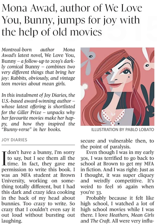 Montreal-born author Mona Awad’s latest novel, We Love You, Bunny – a follow-up to 2019’s darkly comical Bunny – combines two very different things that bring her joy: Rabbits, obviously, and vintage teen movies about mean girls.